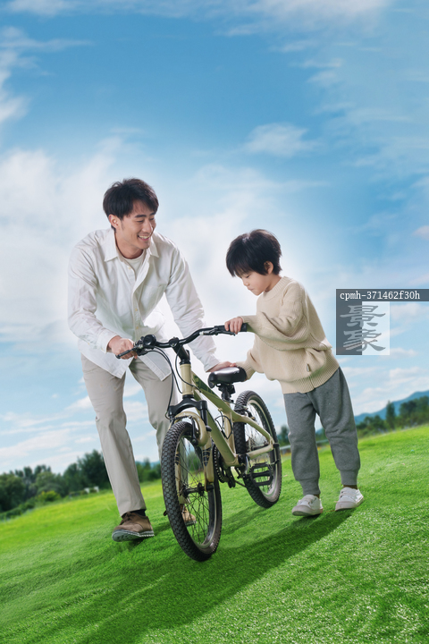 图片标题: 父亲陪孩子骑自行车