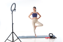 图片标题: 年轻的亚洲女性在做在线运动健身教学