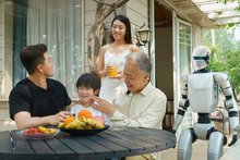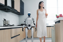 图片标题: 人形机器人与女性在厨房