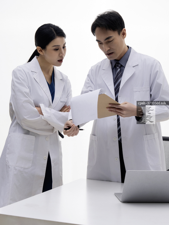 图片标题: 医务人员交谈工作沟通