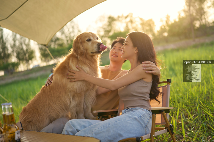 图片标题: 情侣与宠物郊游
