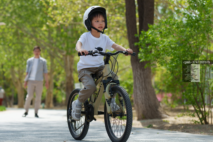 图片标题: 父亲陪孩子骑车