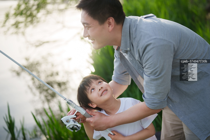 图片标题: 父子湖边垂钓