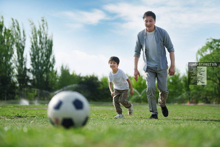 图片标题: 父子踢足球