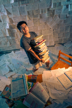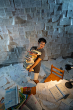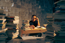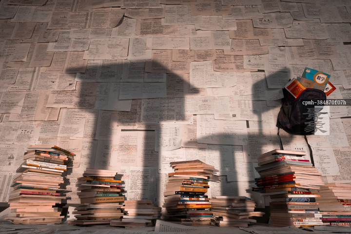 图片标题: 书堆与桌椅影子