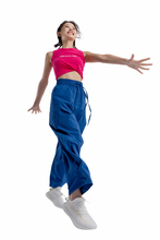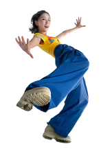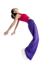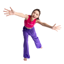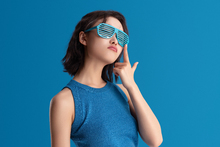 图片标题: 红色背景下的一位快乐青年女人