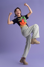 图片标题: 快乐的青年女人戴着耳机听音乐