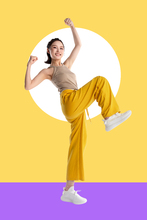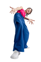 图片标题: 蓝色背景下的青年活力女人