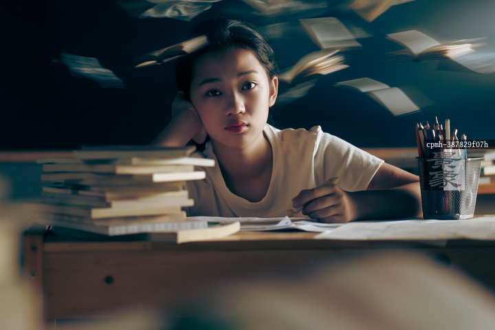 图片标题: 教室里专注学习的少女
