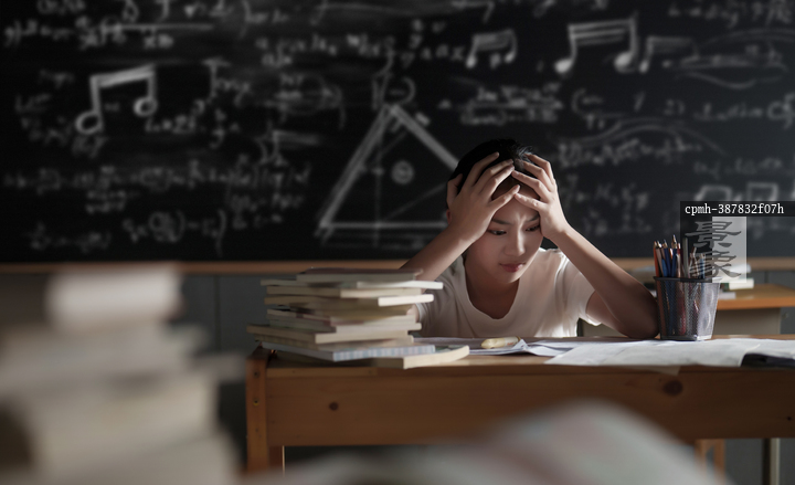 图片标题: 教室里专注学习的少女