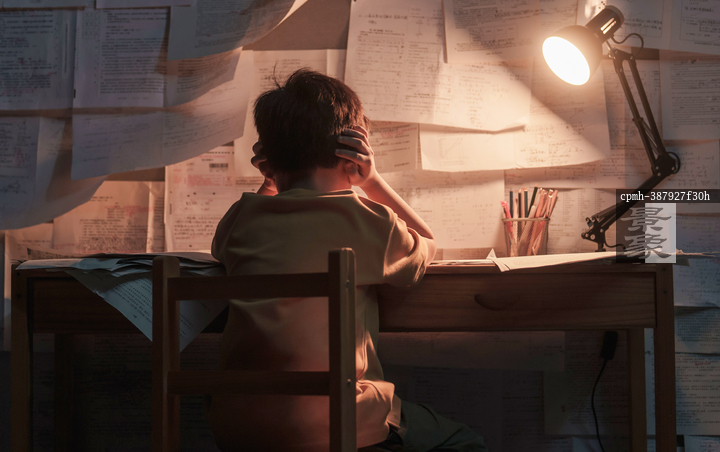 图片标题: 深夜书桌前的少年