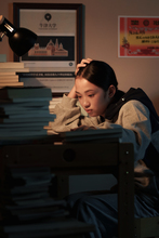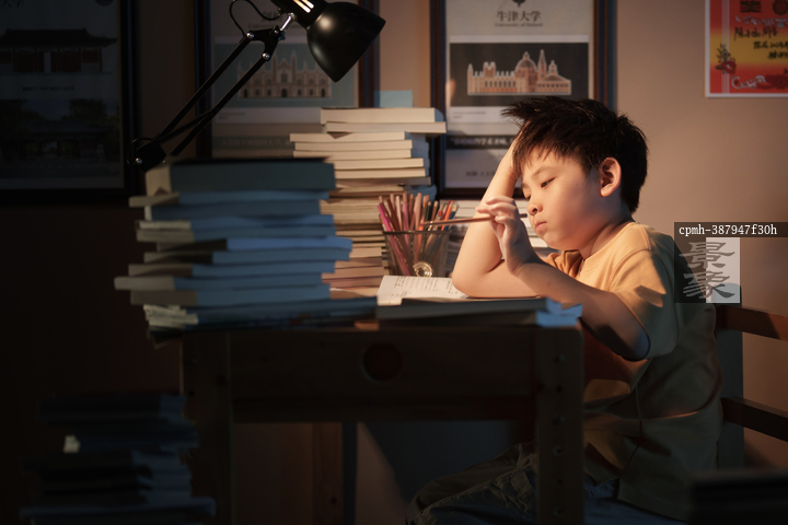 图片标题: 书堆中压力巨大的少年