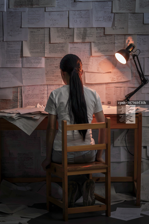 图片标题: 深夜书桌前的少女