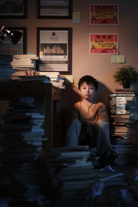 图片标题: 书堆中苦学的少年