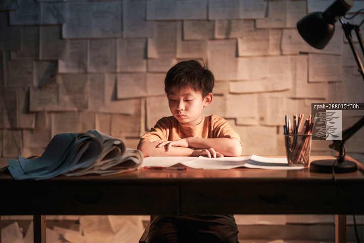 图片标题: 深夜书桌前的少年