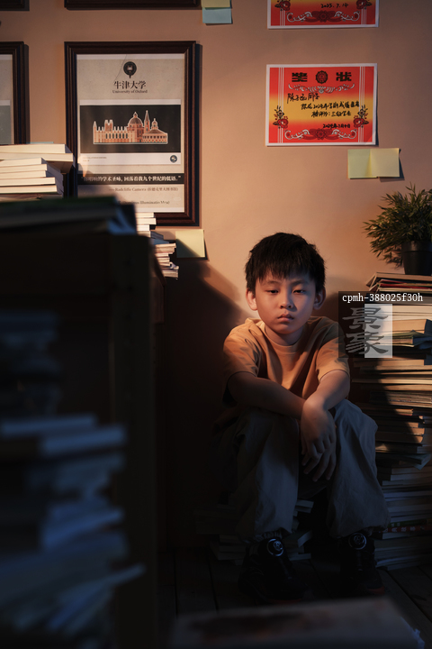 图片标题: 书堆中苦学的少年