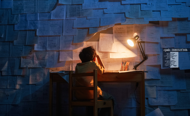 图片标题: 深夜书桌前的少年