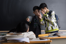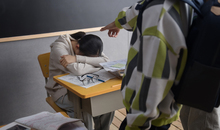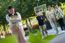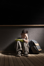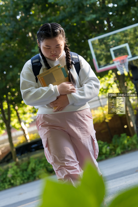 图片标题: 校园少女低头沉思