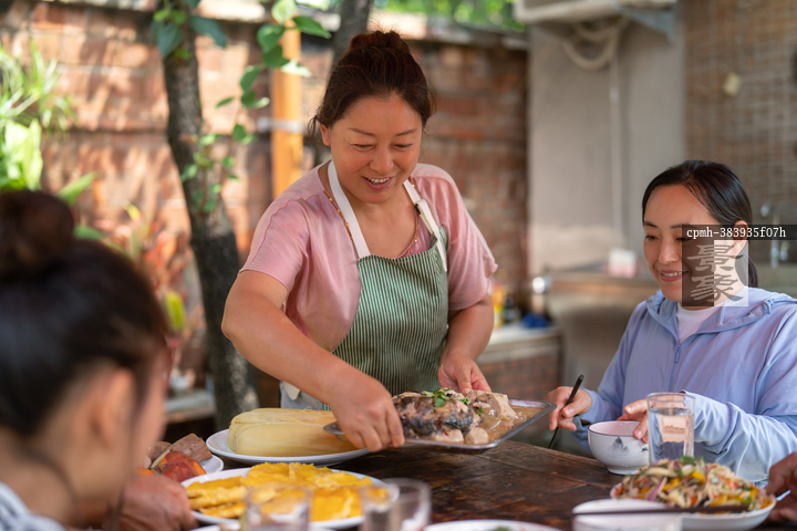 图片标题: 一位农妇做饭招待客人用餐