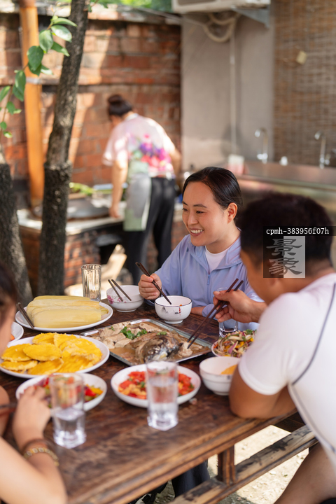 图片标题: 一位农妇做饭招待客人用餐