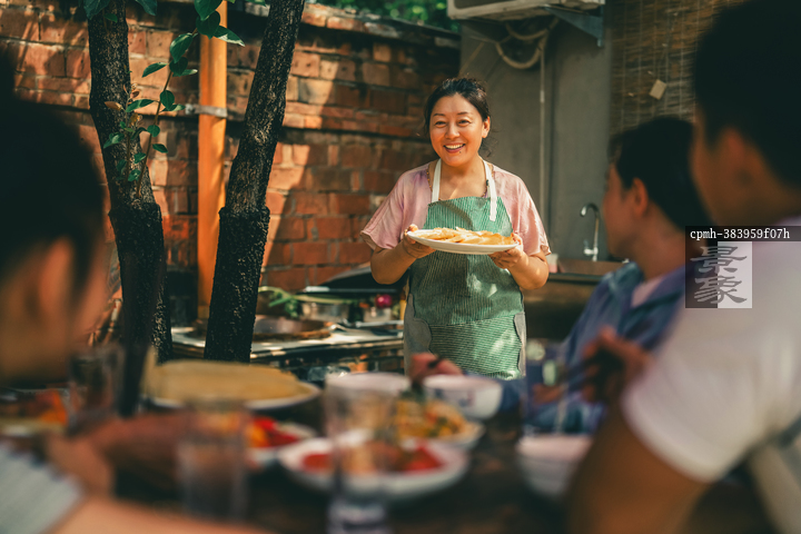 图片标题: 一位农妇做饭招待客人用餐
