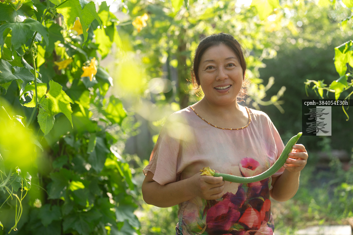 图片标题: 兴奋的农民采摘蔬菜