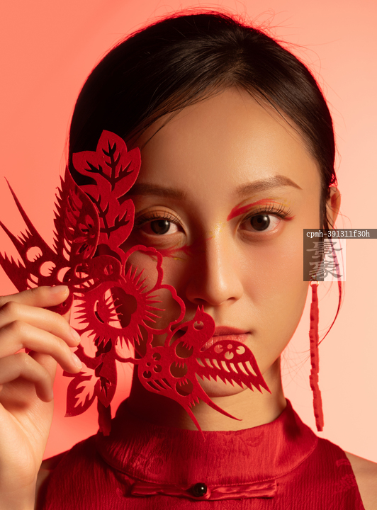 图片标题: 窗花和古典传统东方美女创意人像