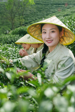图片标题: 年轻女人在茶园采茶
