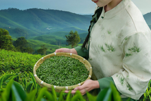 图片标题: 年轻女人在茶园采茶