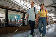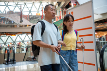 图片标题: 盲人夫妻街头漫步