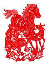 图片标题: 彩色剪纸,踏青图