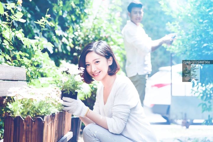 图片标题: 青年情侣户外种花