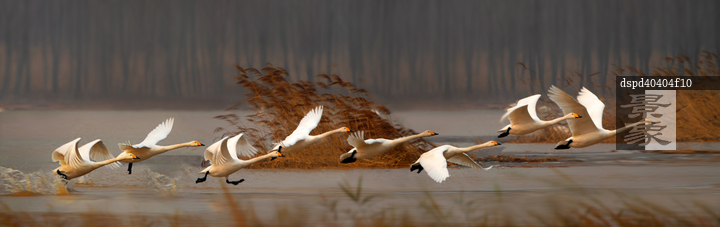 图片标题: 河南三门峡市黄河王官景区内白天鹅
