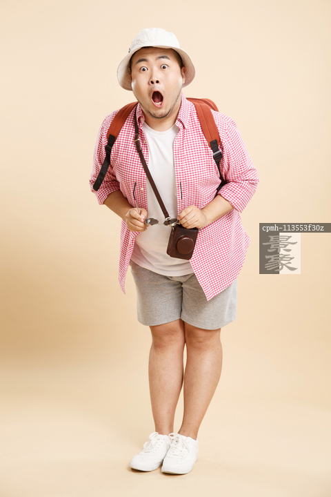 图片标题: 肥胖的青年男人旅行