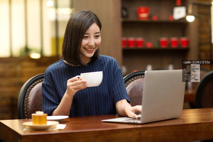 图片标题: 青年女人在咖啡馆