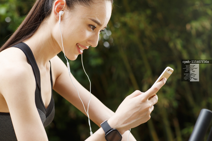 图片标题: 青年女人看手机
