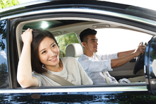 图片标题: 青年夫妇开车出去旅行