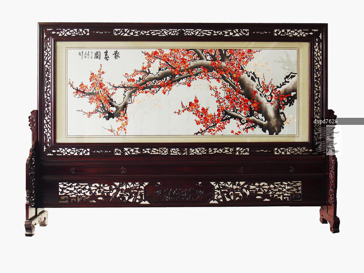 图片标题: 红木雕花刺绣大屏风