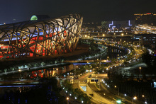 图片标题: 奥运中心区夜景放焰火