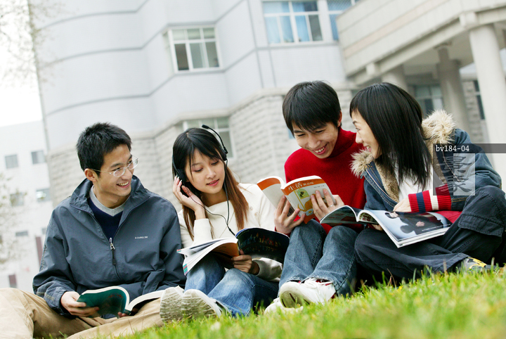 图片标题: 东方大学生在草坪上看书