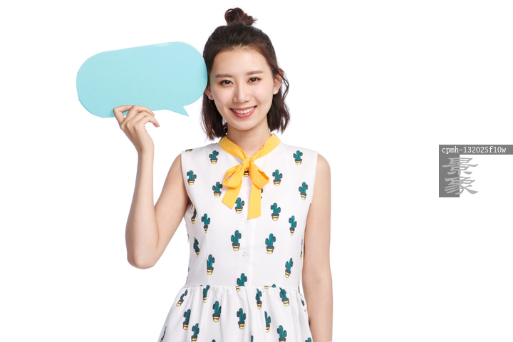 图片标题: 时尚青年女人举着对话框