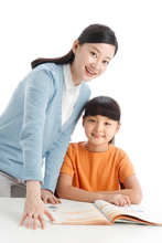 图片标题: 两个小学生在使用平板电脑