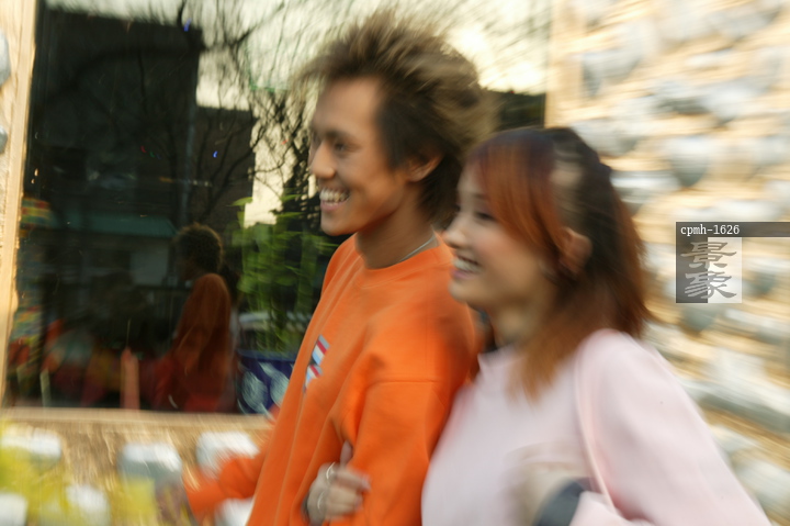 图片标题: 东方年轻情侣在北京的街道