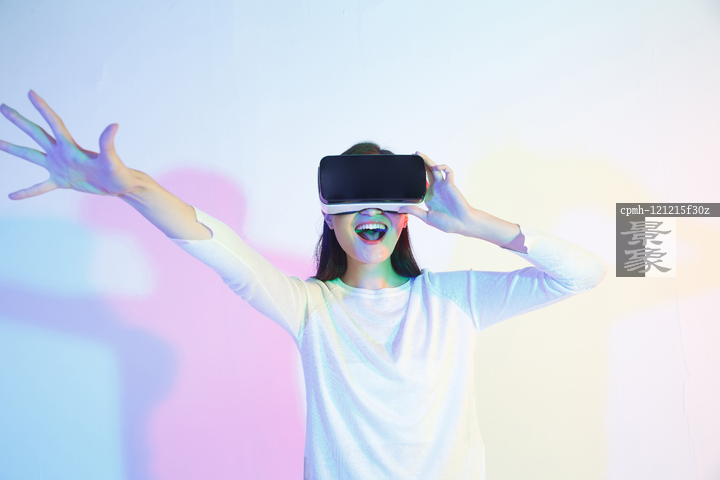 图片标题: 戴着VR眼镜的青年女人