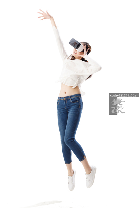 图片标题: 戴着VR眼镜的青年女人