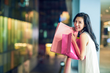 图片标题: 青年情侣在鞋店里试穿鞋子
