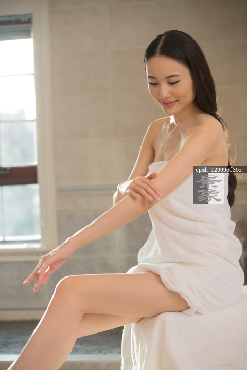 图片标题: 青年女人在浴室
