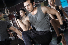 图片标题: 教练指导年轻女子健身