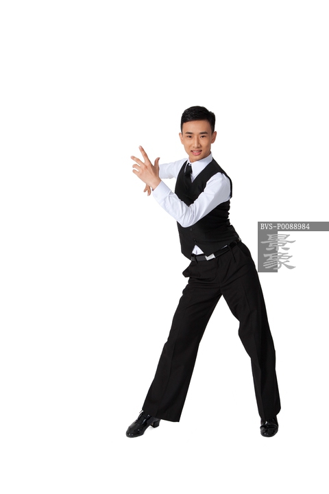 图片标题: 棚拍年轻男演员跳国标舞