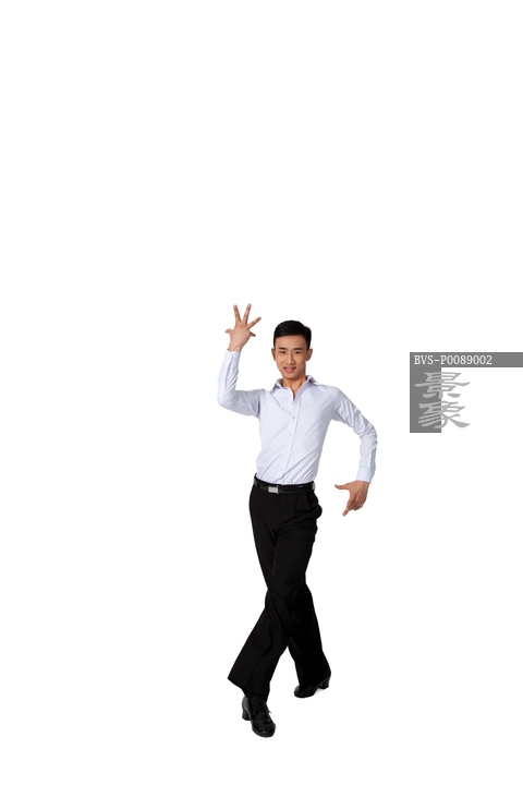 图片标题: 棚拍年轻男演员跳国标舞